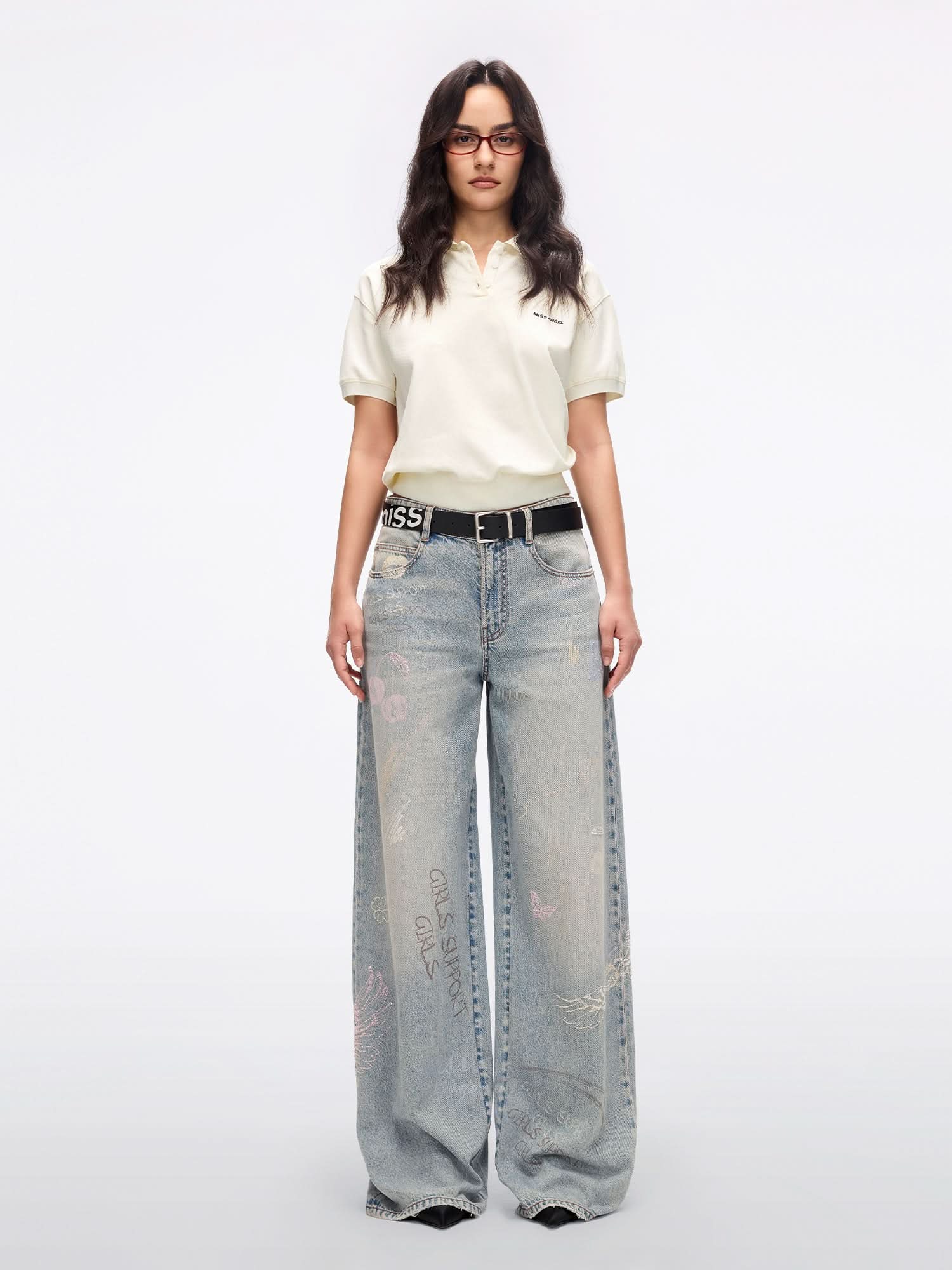 The T-shirt features a fitted silhouette and a Polo collar design, with ribbed cuffs and hem for a neat, structured look. Made from piqué knit fabric, it offers a soft, cool feel against the skin, providing comfort without sticking to the body.