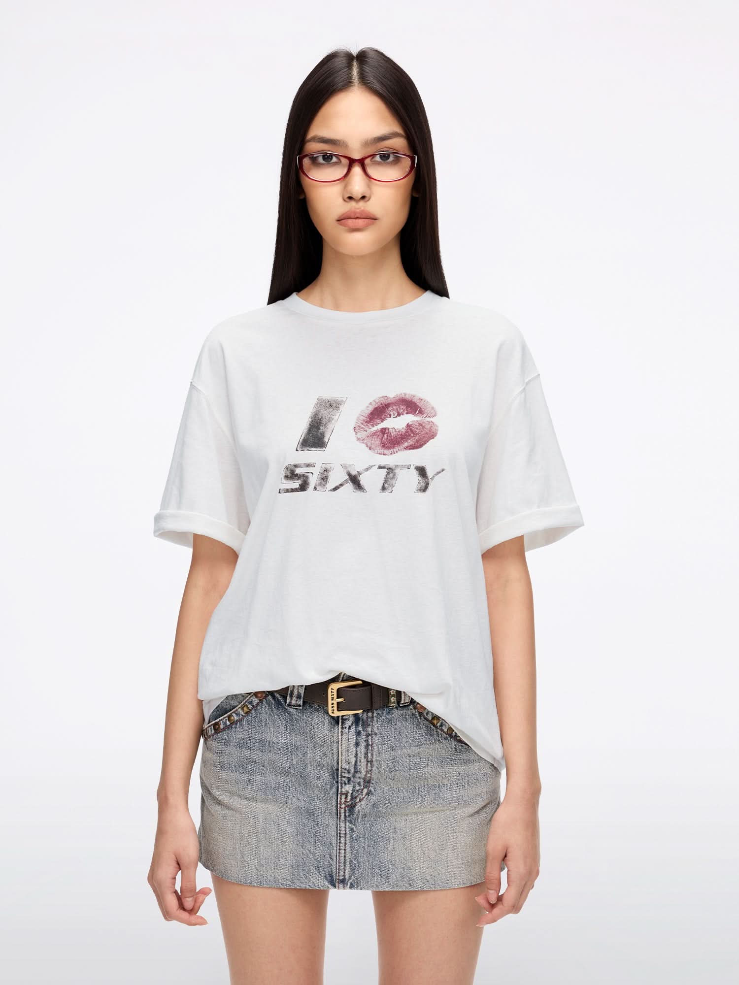 This T-shirt features a relaxed fit with a classic crew neck design, adorned with a vintage lip logo print that adds a touch of fashion flair. Crafted from a cotton-linen knit fabric and designed with a straight-cut silhouette, it offers a flattering shape along with breathable comfort and a soft, smooth feel against the skin.