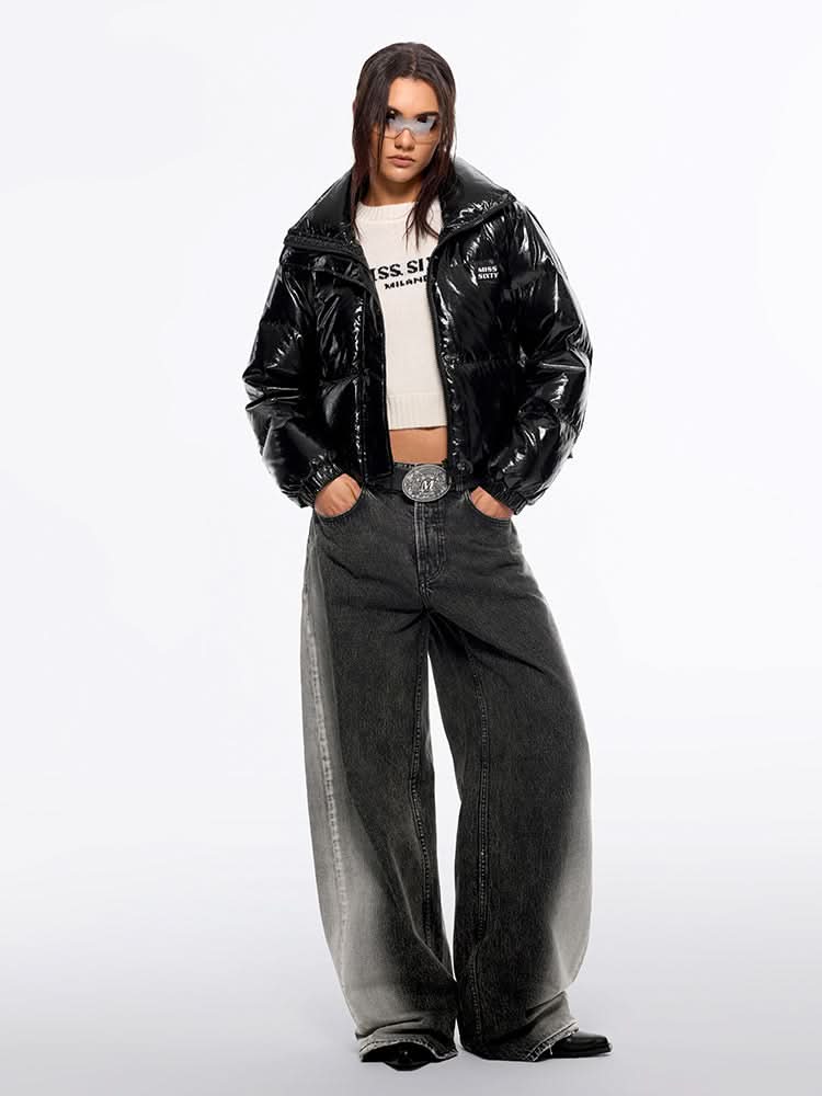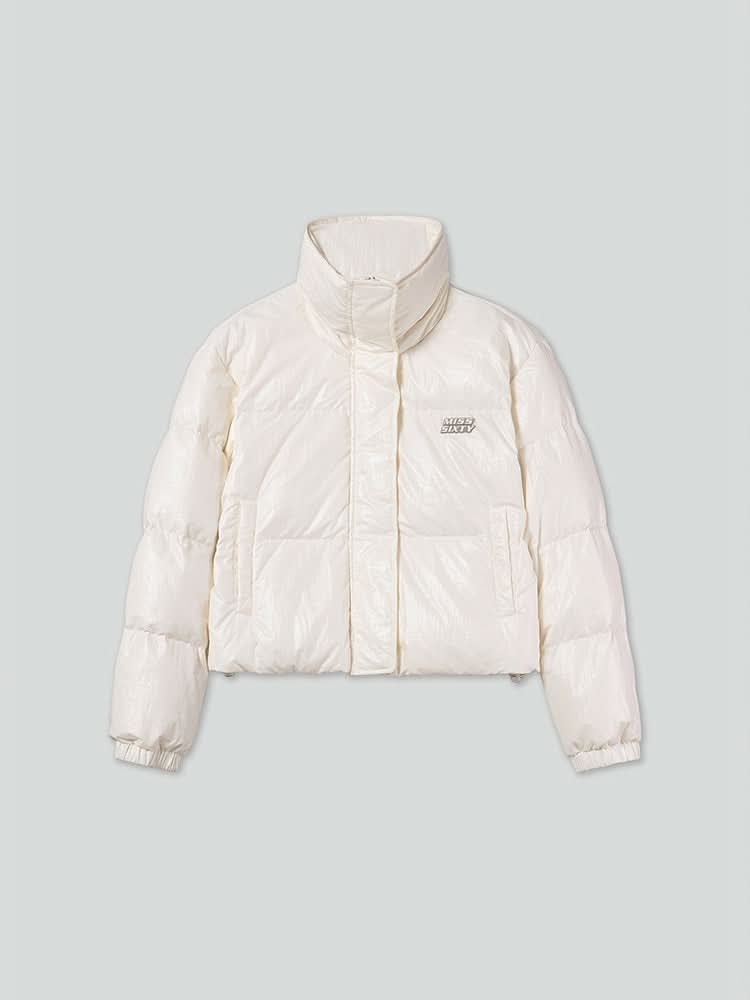 This product is crafted from premium Korean nylon fabric, featuring a high-density, lightweight base that feels comfortable and structured. The added coating gives it a functional, sporty style, ensuring it remains lightweight and dynamic without feeling bulky. The subtle sheen and textured wrinkles lend a sophisticated, modern aesthetic that balances technology with elegance. The fashionable stand-up collar and dual zip-button closure allow for versatile styling. A playful logo patch on the chest adds a touch of youthful energy. The minimalistic side pockets offer practicality, while the drawstring detail at the hem gently shapes a warm, stylish silhouette.