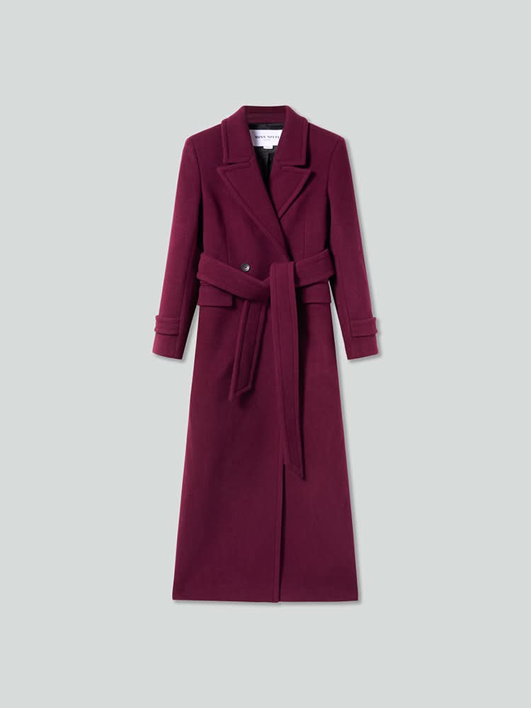 The classic Melton is a type of double-faced wool fabric characterized by its smooth, neat surface and sturdy structure. The material is a blend of wool and nylon, offering a rich, soft texture with elasticity. The finished garment appears full and structured, enhancing its elegant demeanor. The classic suit lapel design and tailored cuts create a sophisticated dressing atmosphere. Paired with a matching belt, it effortlessly cinches the silhouette, elevating the overall look. The clean hem and back vent add an elegant touch, enhancing its modern appeal.