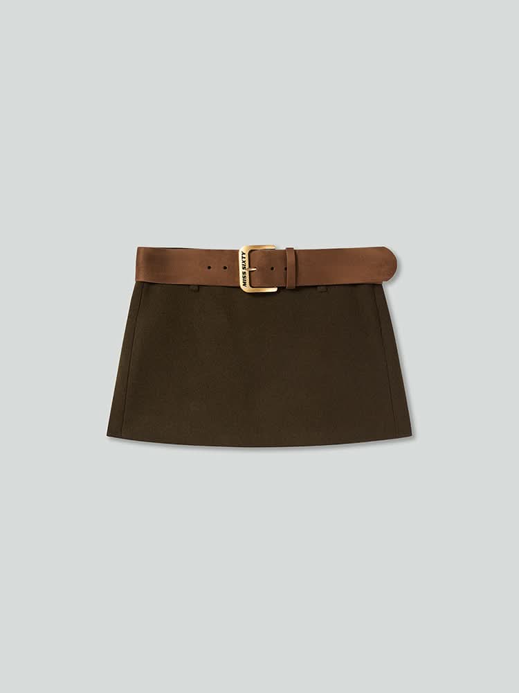 The classic Melton style features a coarse wool blend double-faced fabric with a smooth, refined surface and a sturdy structure. Made from a combination of wool and nylon, the material is rich, soft, and elastic, giving the garment a full and structured appearance that enhances its elegance. A textured belt with a subtle buckle cinches the waist, emphasizing a slender silhouette. The back is designed with a tailored cut that subtly shapes the waist and hips for a flattering fit. The clean hemline is sharp and defined, enhancing the garmentââââ‚?/span>s drape and adding to its overall sophistication.