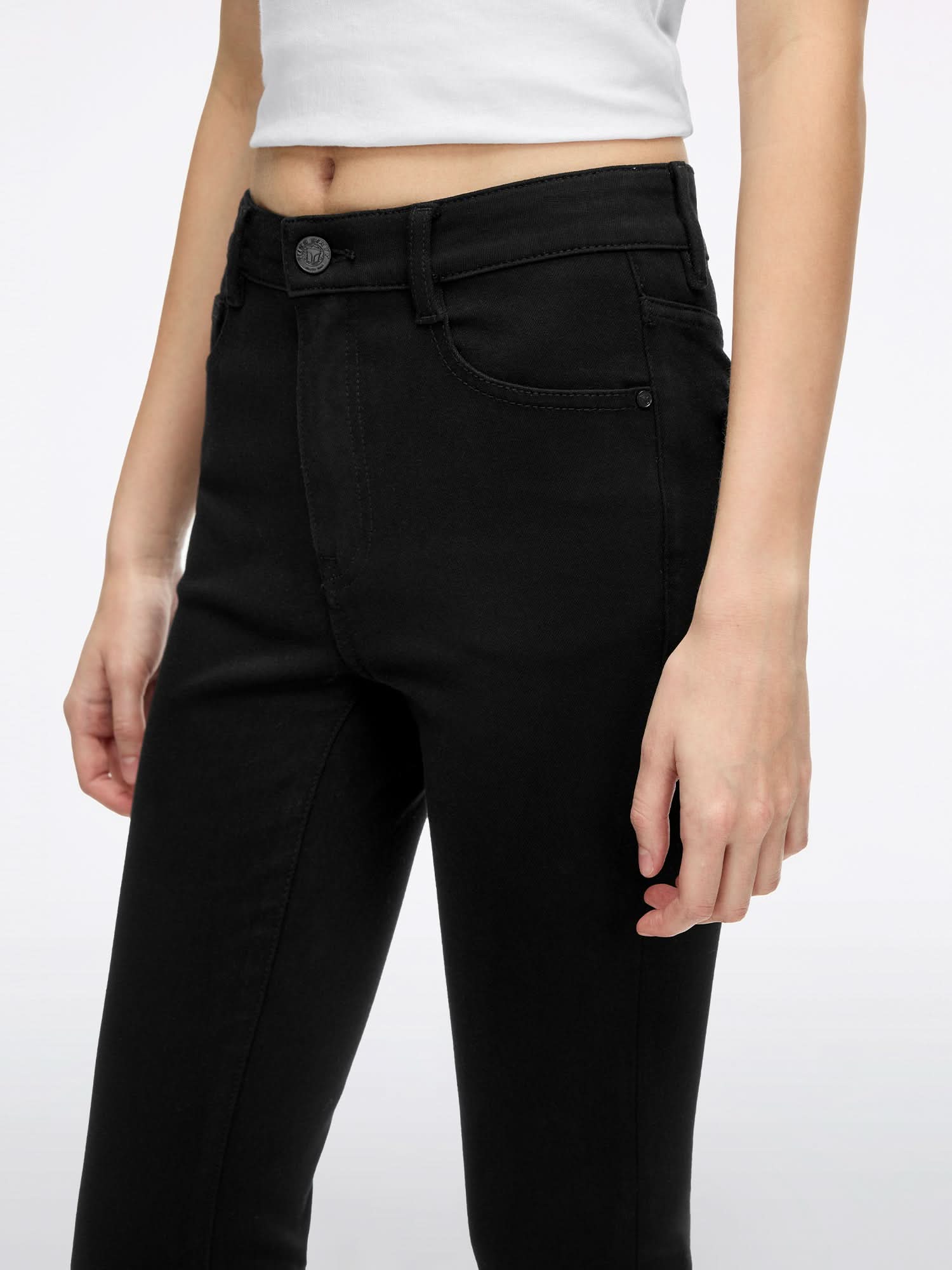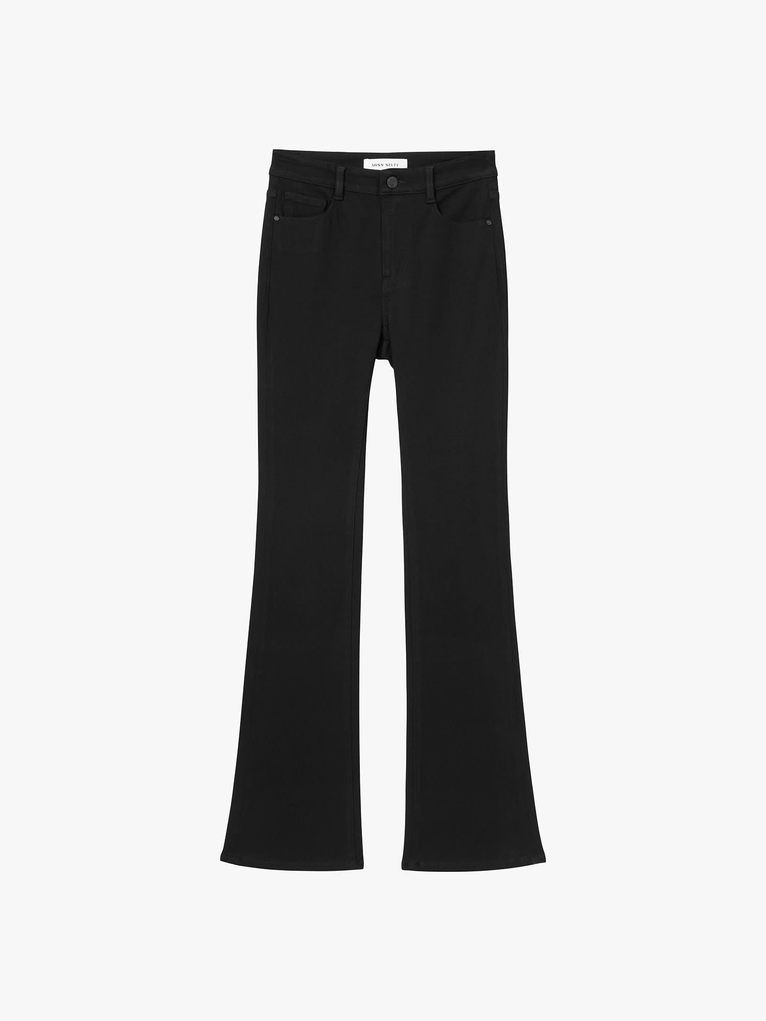 These flared jeans feature a mid-rise waist and a retro silhouette for a modern, stylish look. Made from slim-fit, stretch denim, they naturally accentuate curves while providing a soft, flexible fit without feeling tight. The active-dyeing process delivers a classic, premium black finish.