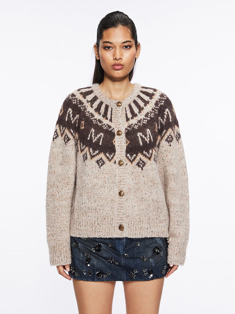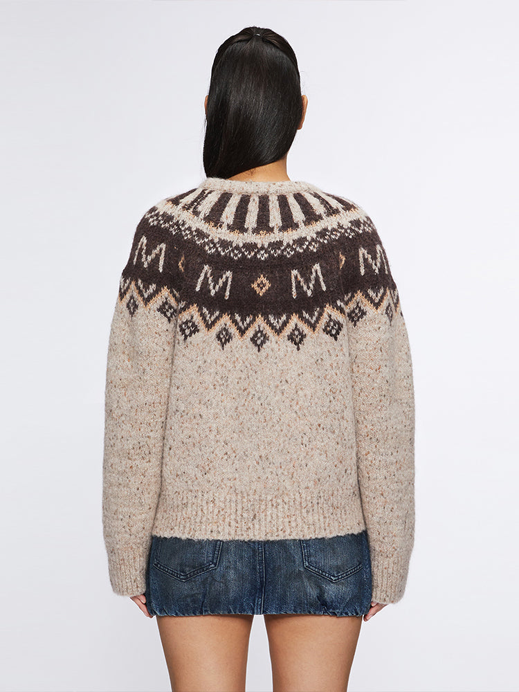 This garment is made with an irregular cotton yarn combined with fine, soft alpaca wool, creating a texture that resembles small seashells or a mottled denim style. The cotton serves as the main material, with a small proportion of warm, long-fiber alpaca wool added for a rich, fluffy, and naturally voluminous feel, perfect for autumn and winter wear. The thick-knit ribbed crew neck design fits comfortably around the neck, offering both warmth and structure. The double side slanted pockets create a smooth appearance, blending practicality with fashion. The ribbed cuffs add a relaxed fit, flattering the arm's shape while maintaining a comfortable, stylish look.