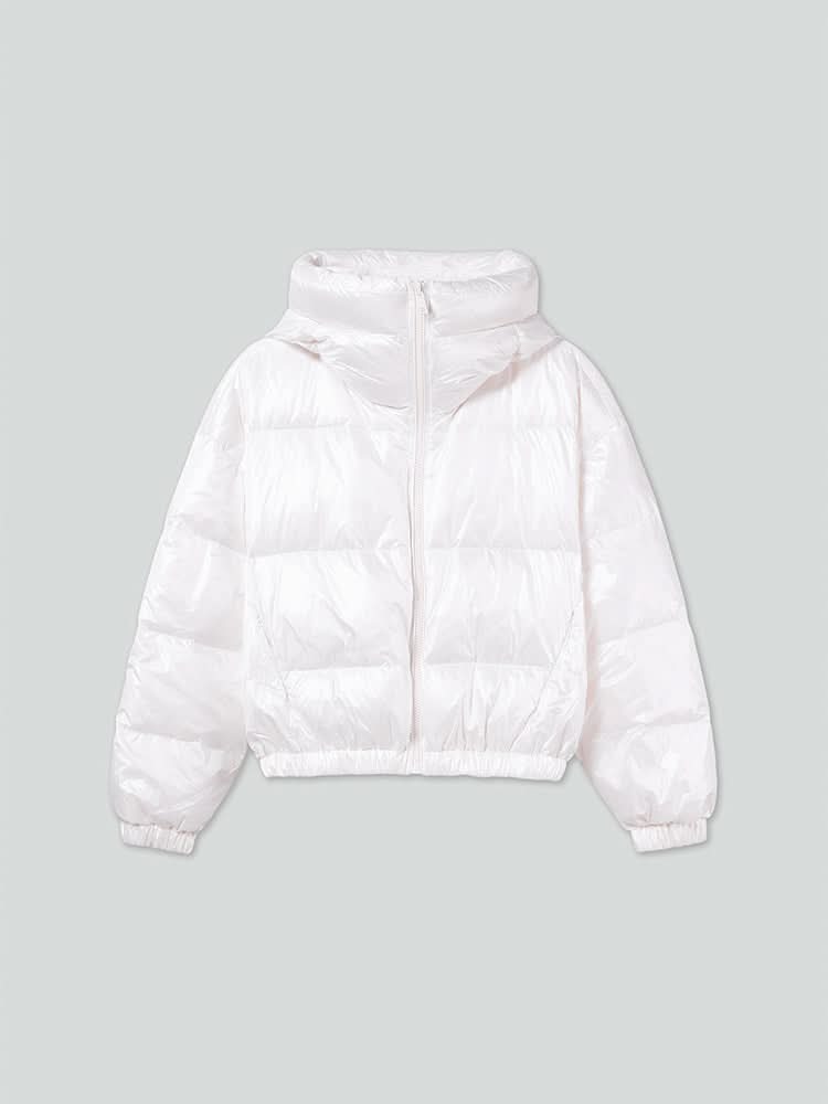 This product is crafted from high-density, ultra-fine denier nylon, featuring a bright, eye-catching sheen. The fabric is lightweight and delicate, offering a soft, silky touch against the skin, while the interior is filled with 90% goose down for a plush, warm feel. The fashionable hooded stand-up collar provides warmth and wind protection, adding a stylish edge. Zippered side pockets offer practical storage for small items while maintaining an aesthetic appeal. The elasticized cuffs provide a snug fit, enhancing the overall vibrant style.