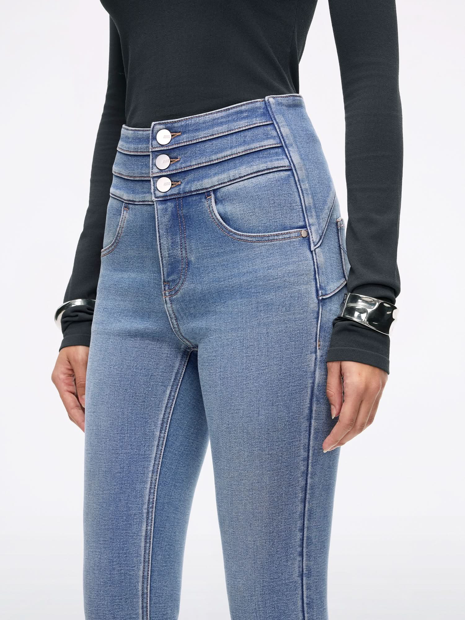 EVERYDAY-BLUE ATTACK PLUS 3 Skinny Jeans feature a triple-ring high waist and a tapered fit, accentuating your natural curves. Made from high-stretch Tencel blend denim in a mid-blue wash, the fabric feels fresh and lightweight, with a brushed inner layer that is warm and soft to the touch.