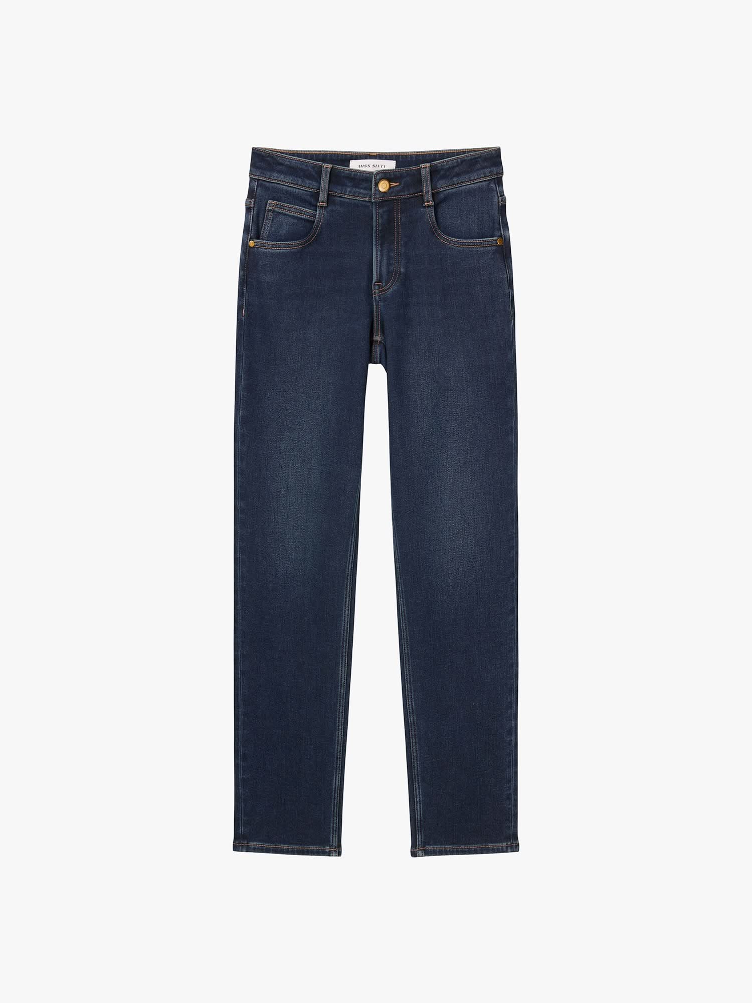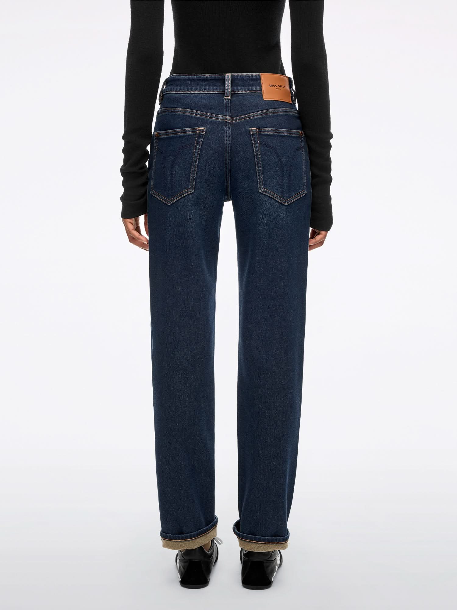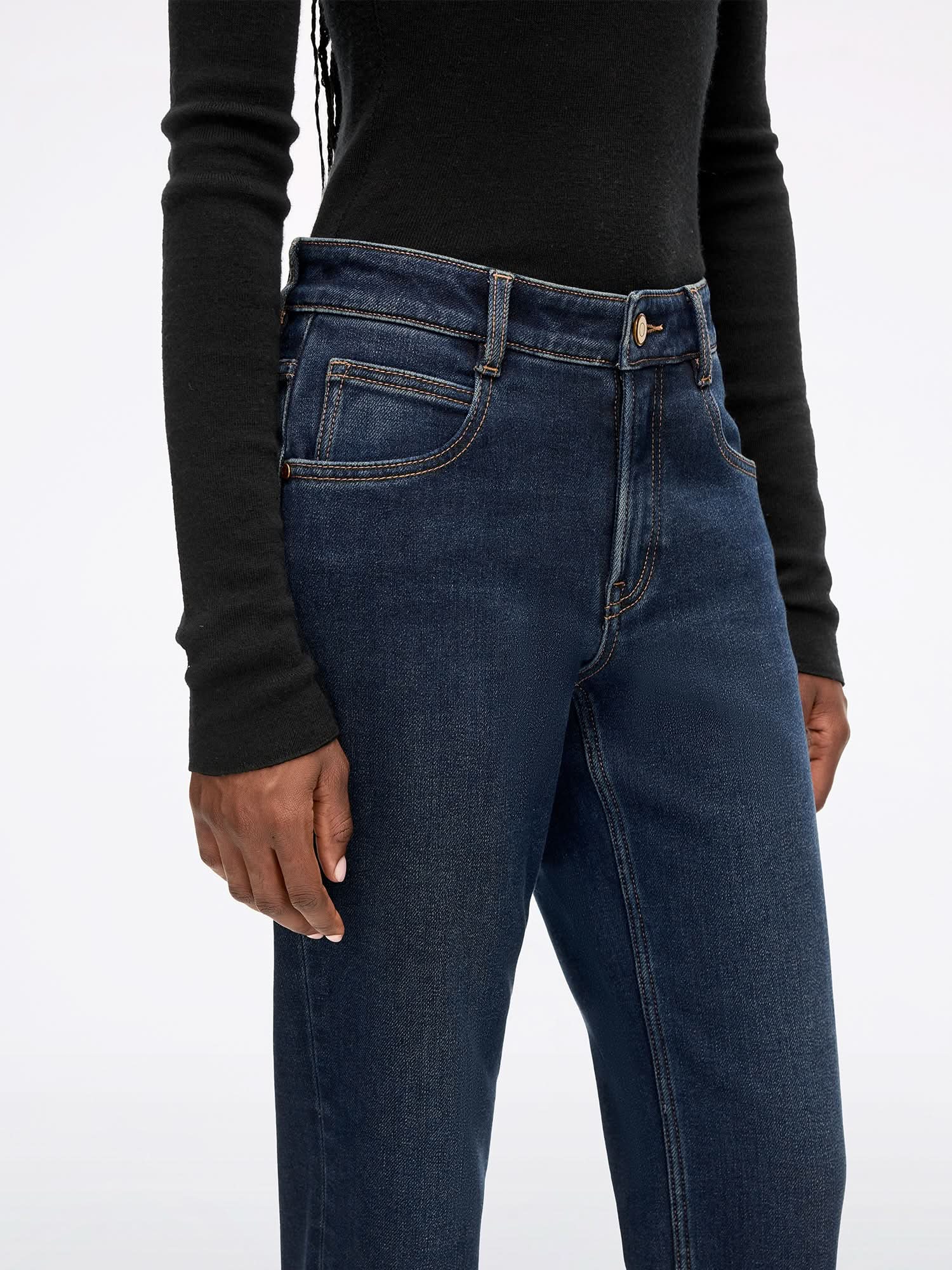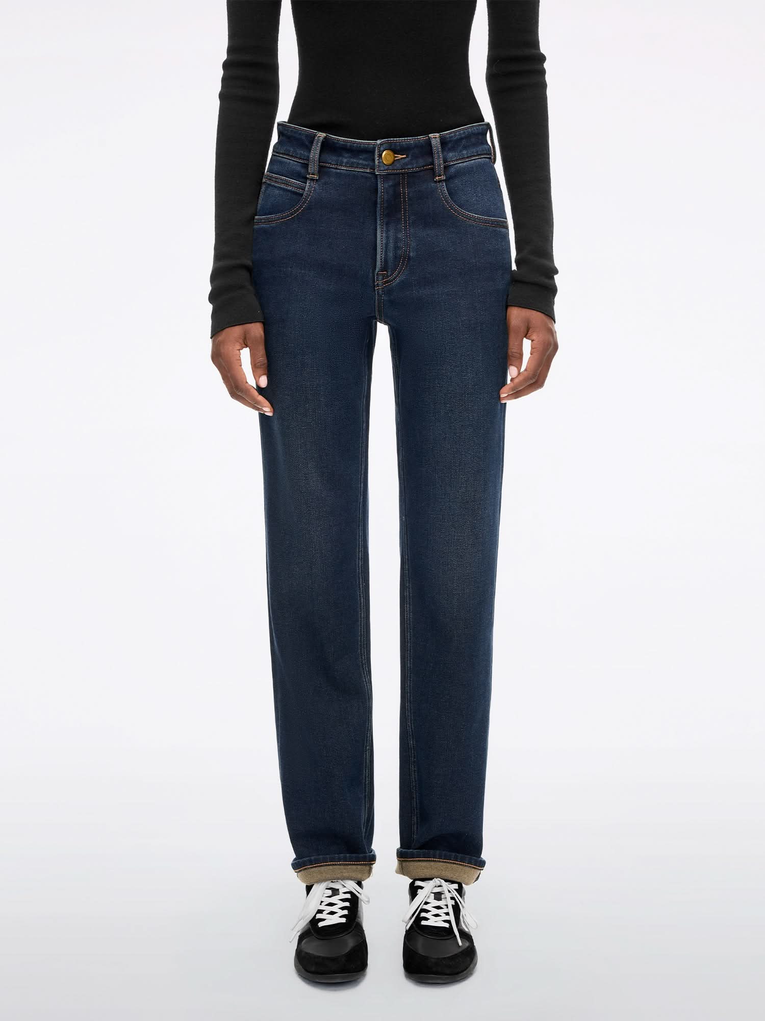 EVERYDAY-SSM Skinny Jeans feature a mid-rise design with a tapered fit that comfortably hugs the legs. The contoured yoke enhances the shape of the hips, highlighting natural curves. Made from high-stretch alpaca-blend denim in a vintage dark wash, these jeans have a soft, brushed inner layer for warmth and comfort.