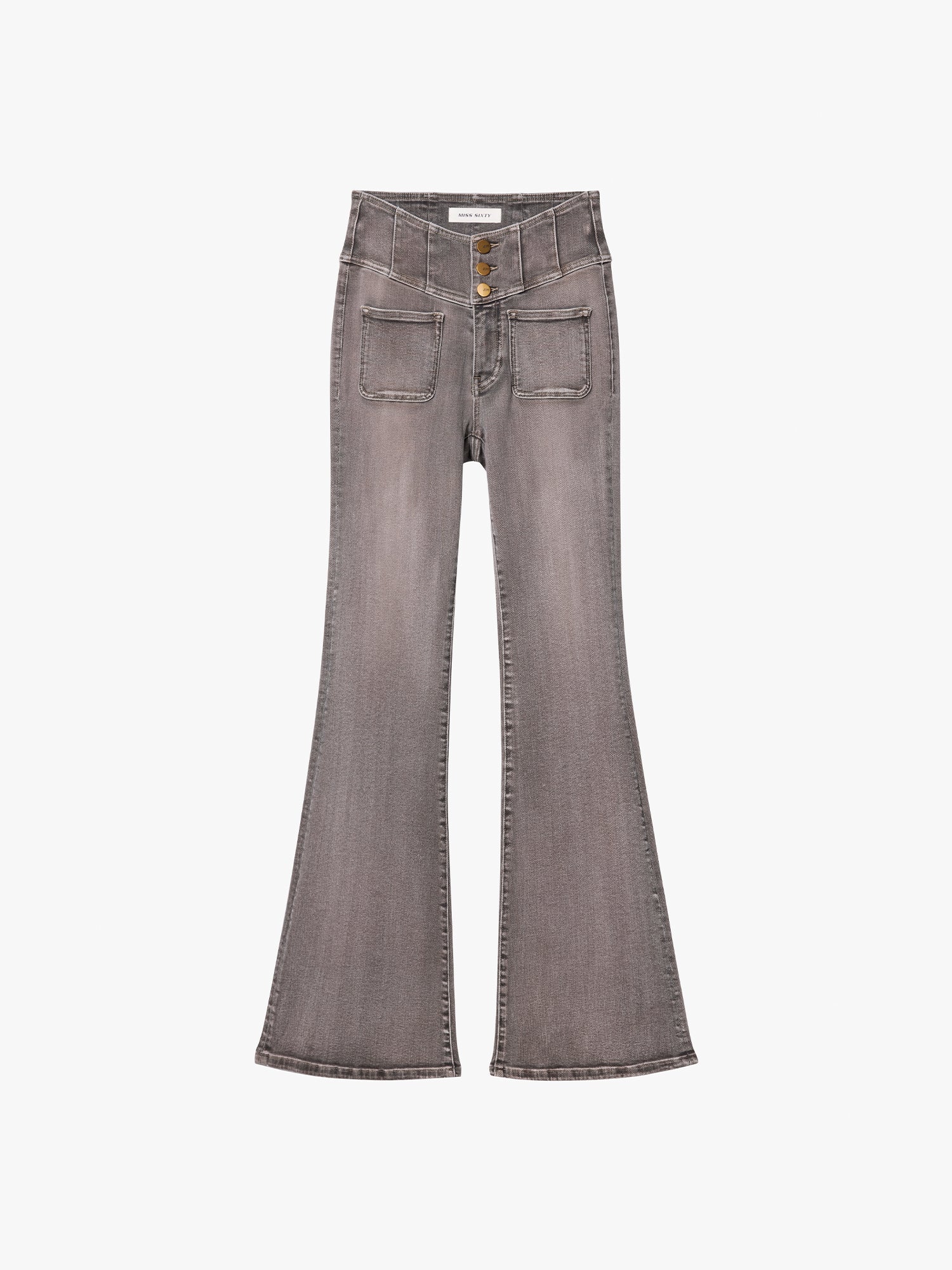 The EVERYDAY-GLENDA PLUS 5 Flared Jeans feature a V-shaped waist-cinching design that naturally defines the waist-to-hip curve, creating a taller, more elongated silhouette. Made from cotton-stretch denim, the fabric fits comfortably with shaping elasticity and undergoes multiple wash processes, giving each piece a unique visual finish.