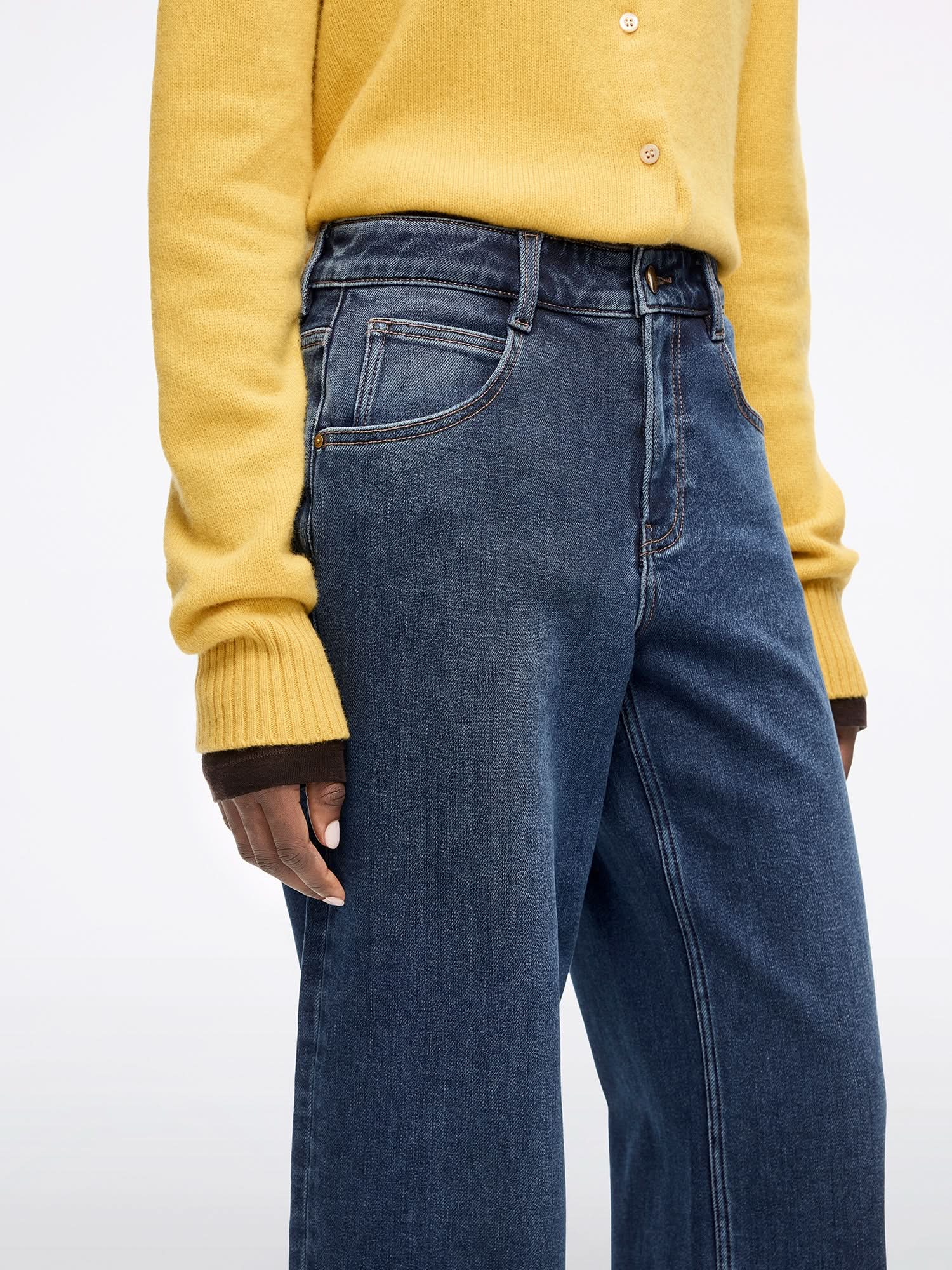 EVERYDAY-SLIM Straight-Leg Jeans feature a mid-rise, tailored fit for enhanced comfort, flattering all leg shapes, with a natural stacked effect at the hem. Made from alpaca-blend denim, soft and skin-friendly, in a vintage dark wash, with a warm brushed inner layer for added comfort.