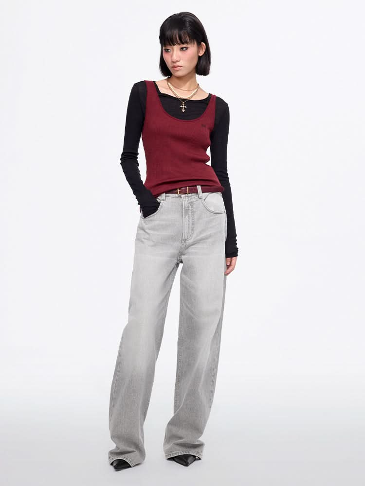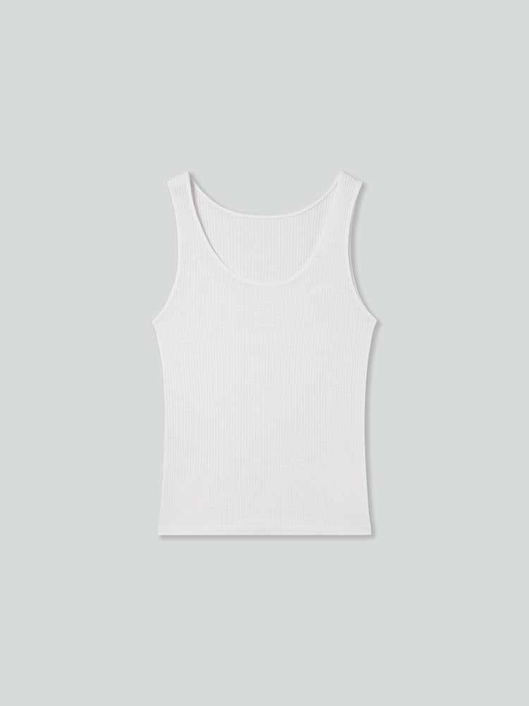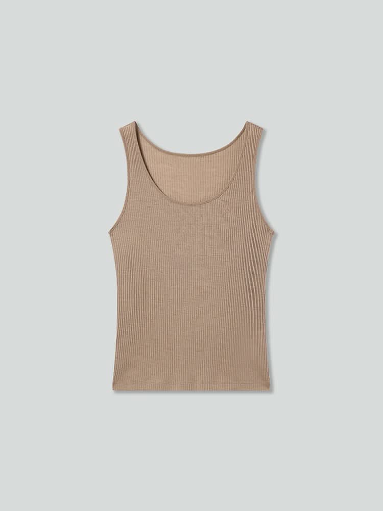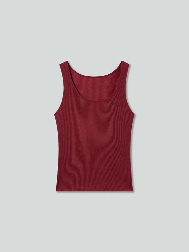 Crafted from fine wool yarn, this piece features ribbed textures that create a slimming, fitted silhouette. The merino wool provides a soft, smooth feel with natural drape, offering comfort, stretch, and a lightweight, non-restrictive fit. The simple U-neck design highlights the shoulders and neckline, showcasing feminine allure. The sleeveless cut accentuates the trapezius muscles for a cool, confident look, creating a vibrant, effortless vibe. The ribbed knit hem comfortably wraps the body for a relaxed and flattering fit.