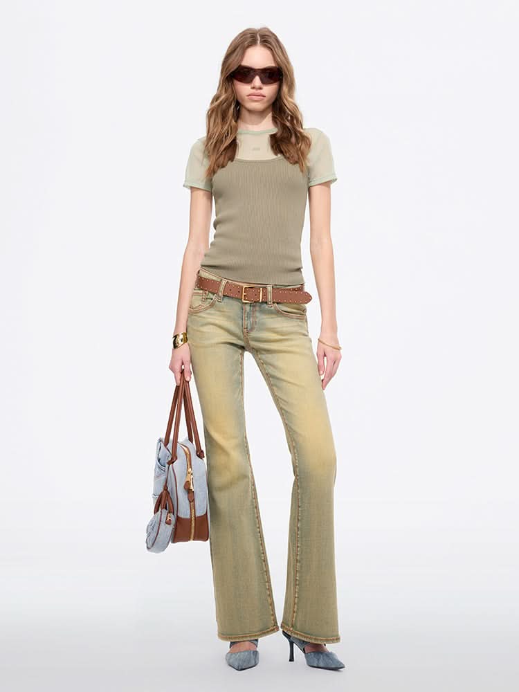 Made from a silk-blend yarn, the garment offers excellent elasticity and a delicate, smooth feel, enhanced by the inclusion of silk for added softness. The fabric is wrapped in viscose fibers, making it comfortable and skin-friendly, with a lightweight and pressure-free fit. The simple U-neck design accentuates the shoulder and neckline, highlighting a feminine charm. The matching logo woven label adds a refined touch, while the ribbed knit hem naturally embraces the body, providing comfort and ease.