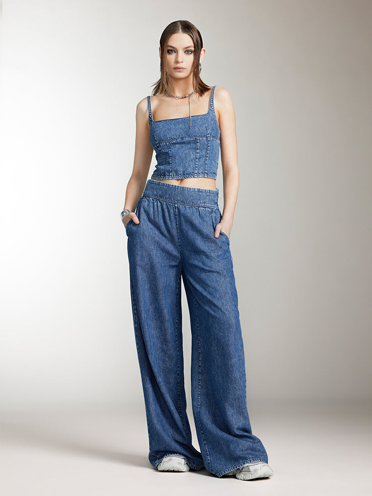 Hemp fibers are long and soft, and when blended with cotton, the fabric exhibits a distinct twill and slub texture, giving it a natural and dynamic appearance. The addition of Lyocell fibers enhances the fabric's drape and smoothness, resulting in a refined and delicate feel. The French square neckline design is stylish and elegant with a touch of subtle sensuality. The adjustable single shoulder strap and the elastic ruching at the back maximize comfort. The multi-panel waist design creates a visually structured and layered look.
