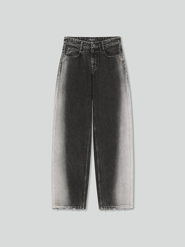 This product is made from premium cotton denim, featuring a clear texture and structured feel. Various treatments, including enzyme washing, hand scraping, edge grinding, snowflake fading, and gradient spraying, create a distinctive ombre effect that showcases the vintage charm of denim. The low-rise cut adds an American retro vibe, effortlessly creating the illusion of longer legs. A matte black leather patch enhances its cool aesthetic, emphasizing the brandâââ€?/span>s premium appeal. The sides feature gradient spraying techniques, while the raw edge detailing on the pant legs embodies a stylish, edgy streetwear vibe.